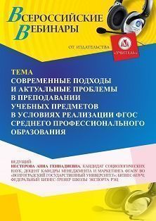 Вебинар «Современные подходы и актуальные проблемы в преподавании учебных предметов в условиях реализации ФГОС среднего профессионального образования»
