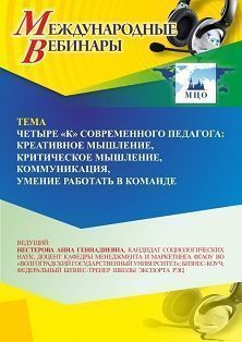 Международный вебинар «Четыре "К"» современного педагога: креативное мышление, критическое мышление, коммуникация, умение работать в команде» Вебинары УчМет | V4.Ru: Маркетплейс