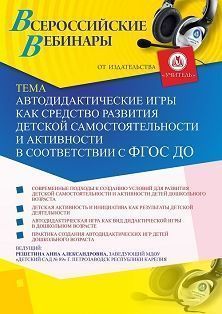 Вебинар «Автодидактические игры как средство развития детской самостоятельности и активности в соответствии с ФГОС ДО»