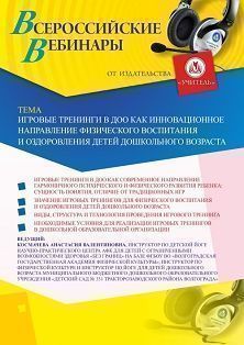 Вебинар «Игровые тренинги в ДОО как инновационное направление физического воспитания и оздоровления детей дошкольного возраста»