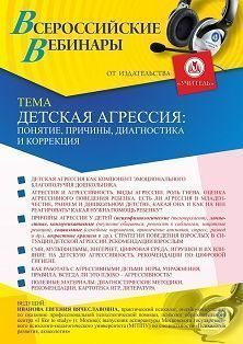 Вебинар «Детская агрессия: понятие, причины, диагностика и коррекция»