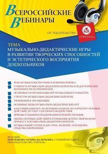 Вебинар «Музыкально-дидактические игры в развитии творческих способностей и эстетического восприятия дошкольников»