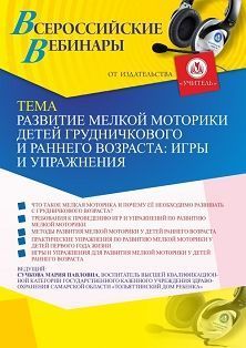 Вебинар «Развитие мелкой моторики детей грудничкового и раннего возраста: игры и упражнения» Вебинары УчМет | V4.Ru: Маркетплейс