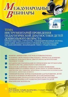 Международный вебинар «Инструментарий проведения педагогической диагностики детей дошкольного возраста: преимущества, структура, унифицированные формы, описание показателей и уровней, рекомендации по заполнению, взаимодействие с родителями»