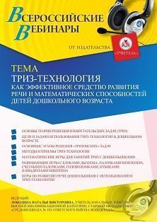 Вебинар «ТРИЗ-технология как эффективное средство развития речи и математических способностей детей дошкольного возраста»