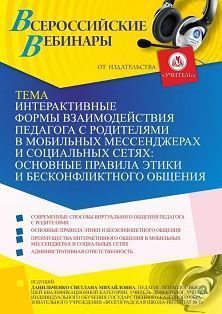 Вебинар «Интерактивные формы взаимодействия педагога с родителями в мобильных мессенджерах и социальных сетях: основные правила этики и бесконфликтного общения»