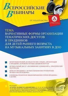 Вебинар «Вариативные формы организации тематических досугов и праздников для детей раннего возраста на музыкальных занятиях в ДОО» Вебинары УчМет | V4.Ru: Маркетплейс