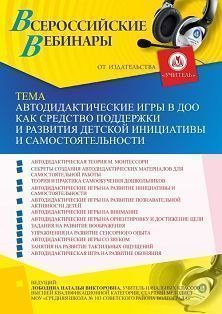 Вебинар «Автодидактические игры в ДОО как средство поддержки и развития детской инициативы и самостоятельности» Вебинары УчМет | V4.Ru: Маркетплейс