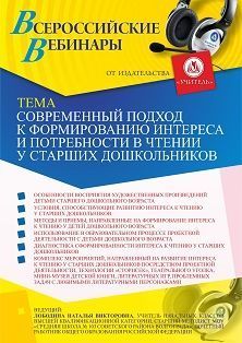 Вебинар «Современный подход к формированию интереса и потребности в чтении у старших дошкольников»