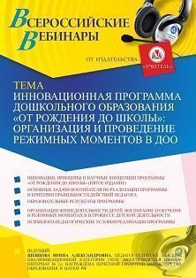 Вебинар «Инновационная программа дошкольного образования «ОТ РОЖДЕНИЯ ДО ШКОЛЫ»: организация и проведение режимных моментов в ДОО»
