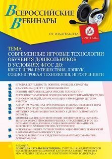 Вебинар «Современные игровые технологии обучения дошкольников в условиях ФГОС ДО: квест, игры-путешествия, Лэпбук, социо-игровая технология, игротренинги»