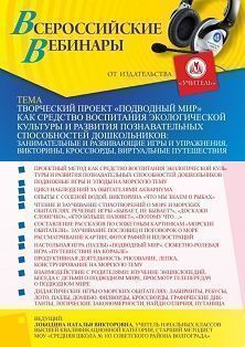 Вебинар «Творческий проект “Подводный мир” как средство воспитания экологической культуры и развития познавательных способностей дошкольников: занимательные и развивающие игры и упражнения, викторины, кроссворды, виртуальные путешествия»