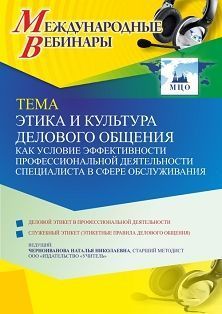 Международный вебинар «Этика и культура делового общения как условие эффективности профессиональной деятельности специалиста в сфере обслуживания» Вебинары УчМет | V4.Ru: Маркетплейс