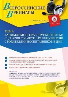 Вебинар «Занимаемся, празднуем, играем: сценарии совместных мероприятий с родителями воспитанников в ДОО» Вебинары УчМет | V4.Ru: Маркетплейс