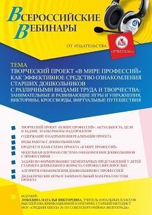 Вебинар «Творческий проект “В мире профессий” как эффективное средство ознакомления старших дошкольников с различными видами труда и творчества: занимательные и развивающие игры и упражнения, викторины, кроссворды, виртуальные путешествия»