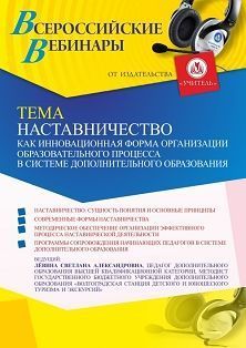 Вебинар «Наставничество как инновационная форма организации образовательного процесса в системе дополнительного образования»