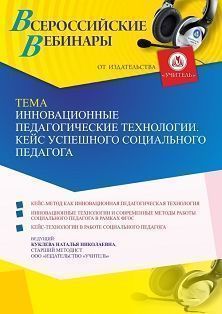 Вебинар «Инновационные педагогические технологии. Кейс успешного социального педагога» Вебинары УчМет | V4.Ru: Маркетплейс