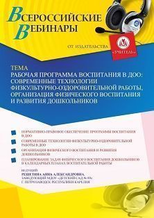 Вебинар «Рабочая программа воспитания в ДОО: современные технологии физкультурно-оздоровительной работы, организация физического воспитания и развития дошкольников»