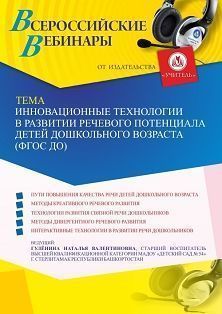 Вебинар «Инновационные технологии в развитии речевого потенциала детей дошкольного возраста (ФГОС ДО)»
