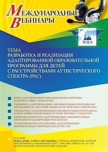 Международный вебинар «Разработка и реализация адаптированной образовательной программы для детей с расстройствами аутистического спектра (РАС)»