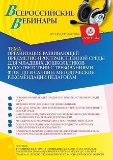 Вебинар «Организация развивающей предметно-пространственной среды для младших дошкольников в соответствии с требованиями ФГОС ДО и СанПиН: методические рекомендации педагогам»