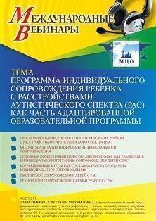 Международный вебинар «Программа индивидуального сопровождения ребёнка с расстройствами аутистического спектра (РАС) как часть адаптированной образовательной программы»