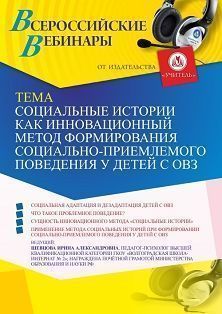 Вебинар «Социальные истории как инновационный метод формирования социально приемлемого поведения у детей с ОВЗ» Вебинары УчМет | V4.Ru: Маркетплейс
