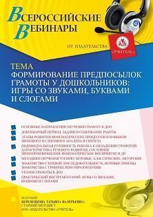 Вебинар «Формирование предпосылок грамоты у дошкольников: игры со звуками, буквами и слогами»