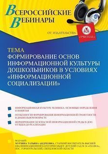Вебинар «Формирование основ информационной культуры дошкольников в условиях “информационной социализации”» Вебинары УчМет | V4.Ru: Маркетплейс