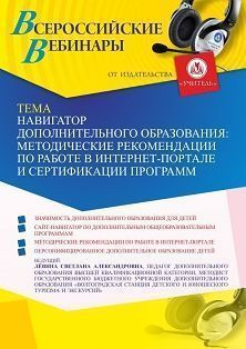 Вебинар «Навигатор дополнительного образования: методические рекомендации по работе в интернет-портале и сертификации программ» Вебинары УчМет | V4.Ru: Маркетплейс