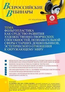 Вебинар «Фольгопластика как средство развития художественно-творческих способностей, познавательной сферы старших дошкольников, эстетического отношения к окружающему миру»