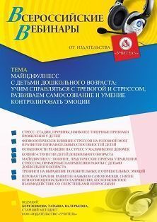 Вебинар «Майндфулнесс с детьми дошкольного возраста: учим справляться с тревогой и стрессом, развиваем самосознание и умение контролировать эмоции» Вебинары УчМет | V4.Ru: Маркетплейс