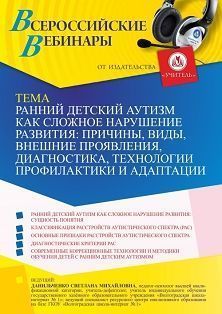 Вебинар «Ранний детский аутизм как сложное нарушение развития: причины, виды, внешние проявления, диагностика, технологии профилактики и адаптации»