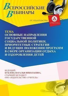 Вебинар «Основные направления государственной социальной политики, приоритетные стратегии и ведущие положения программ в сфере организации отдыха и оздоровления детей»