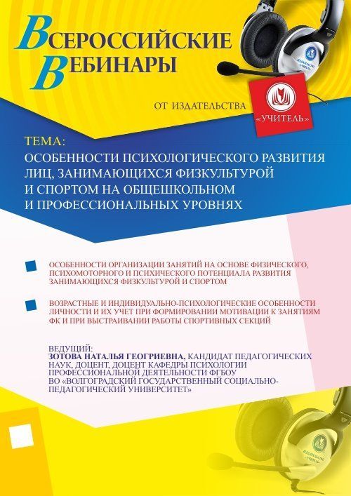 Приглашаем тренеров-преподавателей, учителей, инструкторов по физической культуре, методистов принять участие в offline-вебинаре «Особенности психологического развития лиц, занимающихся физкультурой и спортом на общешкольном и профессиональных уровнях».
