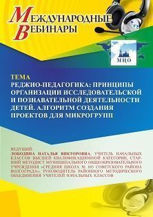 Международный вебинар «Реджио-педагогика: принципы организации исследовательской и познавательной деятельности детей. Алгоритм создания проектов для микрогрупп»