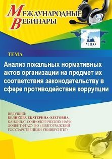 Международный вебинар «Анализ локальных нормативных актов организации на предмет их соответствия законодательству в сфере противодействия коррупции» Вебинары УчМет | V4.Ru: Маркетплейс