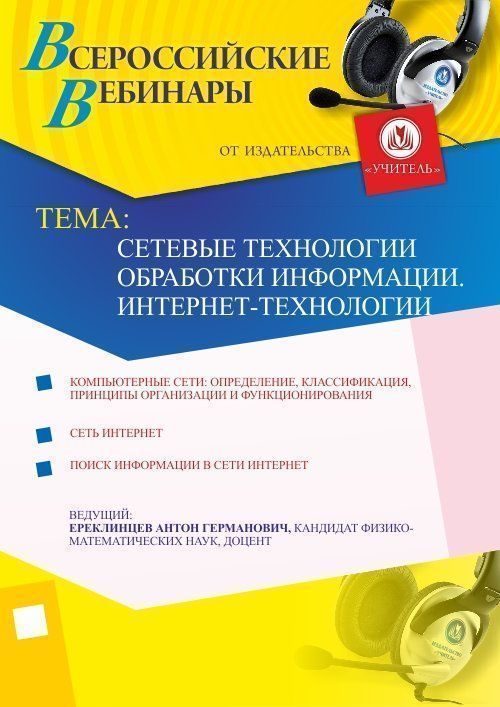 Приглашаем педагогов и специалистов, осуществляющих педагогическую деятельность принять участие в offline-вебинаре «Сетевые технологии обработки информации. Интернет-технологии».