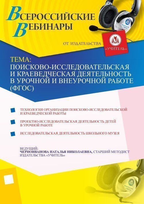 Приглашаем педагогов и специалистов ОО, воспитателей, заместителей руководителя по УВР, методистов, педагогов дополнительного образования, старших воспитателей, руководителяей МО, руководителей школьных музеев ОО принять участие в offline-вебинаре «Поисково-исследовательская и краеведческая деятельность в урочной и внеурочной работе (ФГОС)».