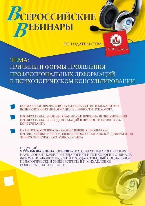 Приглашаем педагогов-психологов, студентов принять участие в offline-вебинаре «Причины и формы проявления профессиональных деформаций в психологическом консультировании».