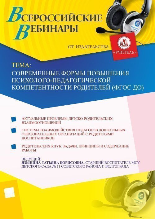 Приглашаем воспитателей ДОО, педагогов-психологов, родителей принять участие в offline-вебинаре «Современные формы повышения психолого-педагогической компетентности родителей (ФГОС ДО)».