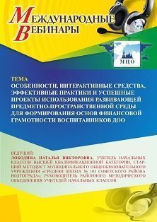 Международный вебинар «Особенности, интерактивные средства, эффективные практики и успешные проекты использования развивающей предметно-пространственной среды для формирования основ финансовой грамотности воспитанников ДОО»