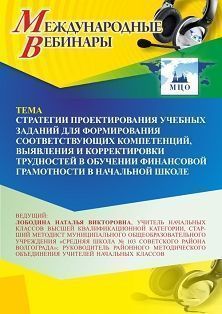Международный вебинар «Стратегии проектирования учебных заданий для формирования соответствующих компетенций, выявления и корректировки трудностей в обучении финансовой грамотности в начальной школе»