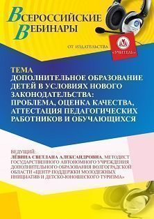 Вебинар «Дополнительное образование детей в условиях нового законодательства: проблема, оценка качества, аттестация педагогических работников и обучающихся»