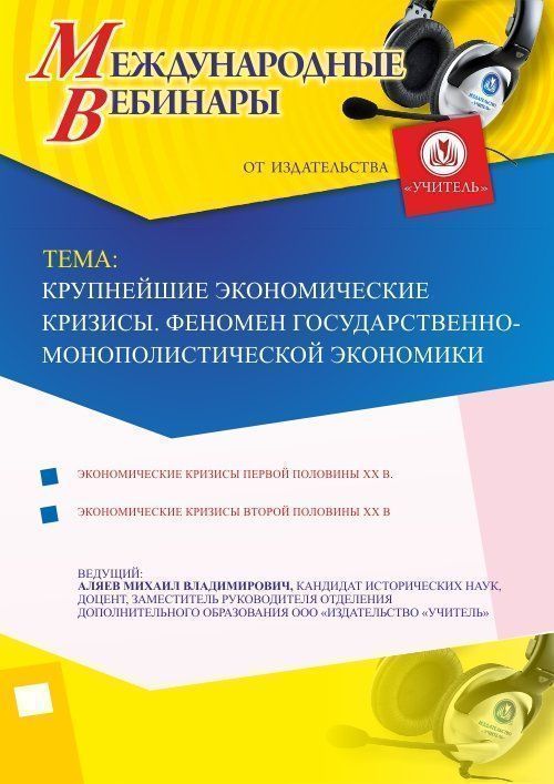 Приглашаем учителей-предметников, методистов принять участие в offline-вебинаре «Крупнейшие экономические кризисы. Феномен государственно-монополистической экономики».