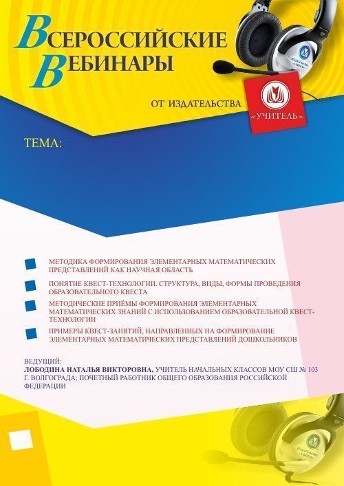 Приглашаем воспитателей ДО, методистов принять участие в offline-вебинаре «Формирование элементарных математических представлений дошкольников с использованием образовательной квест-технологии».