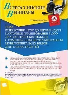 Вебинар «Разработчик ФГОС ДО рекомендует: карточное планирование в ДОО, диагностические пакеты с комплексным инструментарием мониторинга всех видов деятельности детей»