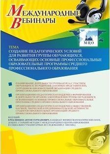 Международный вебинар "Создание педагогических условий для развития группы обучающихся, осваивающих основные профессиональные образовательные программы среднего профессионального образования"