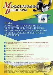 Международный вебинар «Организация и проведение ЕГЭ по иностранному языку: порядок, инструкция, структура, содержание и формы, технология подготовки школьников»