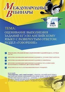 Международный вебинар «Оценивание выполнения заданий ЕГЭ по английскому языку с развернутым ответом: раздел “Говорение”» Вебинары УчМет | V4.Ru: Маркетплейс